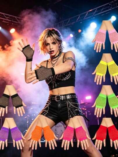 1 Pair Women's Short Mesh Gloves, Suitable For Nightclub And Punk Style Events. Available In Multiple Colors And Styles, Featuring Sexy And Stretchy Mesh Design. Ideal For Wearing At Parties, A Great Gift To Add Festive Atmosphere. These Gloves Are Also Elegant, Suitable For Girls Aged 8-16 Wearing Western-Style Outfits.