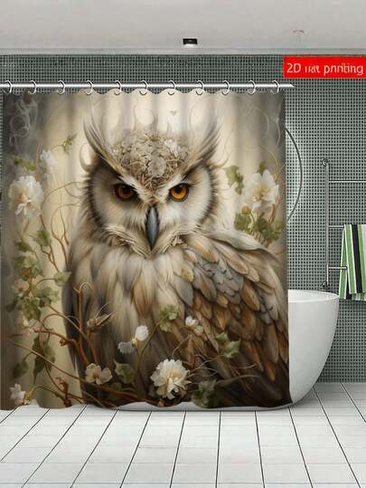 1/4pcs Deluxe Owl Pattern Bathroom Set - Waterproof Shower Curtain, Non-Slip Rug, U-Shape Mat, Lid Cover Pad - Complete Bathroom Decor Solution With 12 Hooks For Easy Installation - Owl - View 1