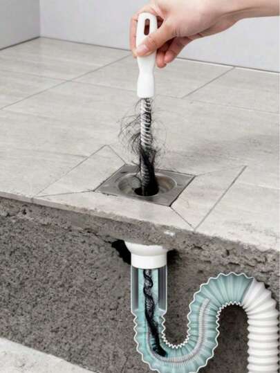 1 Drain Brush For Clearing Hair Clogged In Sink Drain, 1 Brush For Cleaning Shower Head And Bathtub Crevices, 1 Bathroom Drain Cleaner, 1 Flexible Brush For Cleaning Drains, Drain Unclogging Tool, Pet Hair Remover, Bathroom, Kitchen And Vanity Cleaning Accessories - White - View 1
