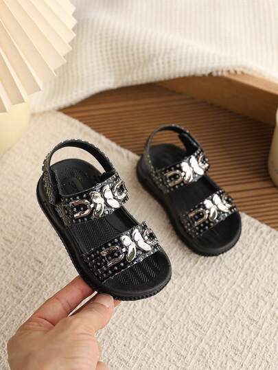 1 Pair Girls' Summer New Soft Bottom Fashion Outdoor Non-Slip Flat Sandals, Toddler/Little Kid Daily Wear Versatile Casual Beach Sandals - Black - View 1