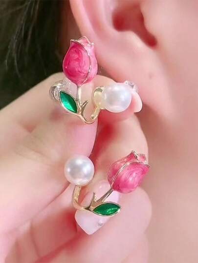 1 Pair Pink Tulip Earrings, Two Earrings, Petite & Fashionable Versatile, Sweet & Elegant Earrings,Summer,Jewellery