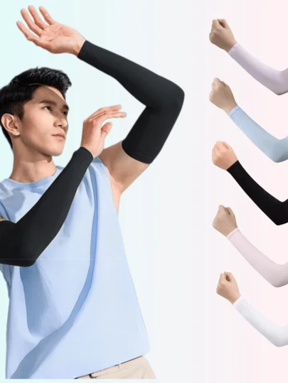 1 Pair Unisex Anti-Slip Compression Arm Sleeves, Elastic Breathable Sports Arm Sleeves Suitable For Basketball, Cycling, Fitness And Daily Use - A - View 1