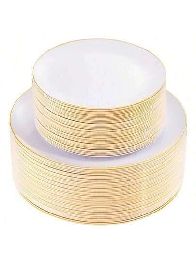 1 Set Of 20 White Gold Rimmed Round Cake/Dessert Plates, Including (7.5 Inch/10.25 Inch Serving Platters) And High-Quality Fruit Salad Plates, Reusable And Easy To Clean. Ideal For Weddings, Valentine's Day, Birthdays And Holiday Gatherings. - Multicolor - View 1