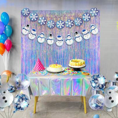 1pc 3.2ft X 6.5ft Iridescent Party Streamers Backdrop - Neon Transparent Holographic Tinsel Foil Fringe Curtain For Mermaid/Frozen/Sea Party Theme Decorations