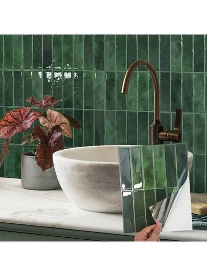 Product description: This three-dimensional green wall tile sticker with a three-dimensional relief design on the surface, realistic texture and soft color. It is suitable for wall decoration in various spaces such as kitchens, bathrooms, and balconies. Waterproof and oil-proof, easy to clean, and construction-free, it can easily create a neat and beautiful space atmosphere, combining beauty and practicality. Product highlights: 1. Three-dimensional brick pattern design: simulated brick surface texture, strong three-dimensional relief texture, more decorative effect when fitted to the wall, and enhance the sense of space hierarchy and overall texture. 2. Waterproof and oil-proof surface: The surface is thickened and coated to effectively prevent oil and water stains from penetrating. It is suitable for easily contaminated areas such as kitchen stoves and washbasins, and daily cleaning is easy and quick. 3. With self-adhesive backing, easy to install: no glue is required, the back is self-adhesive, tear and stick, firm and not warped, suitable for smooth walls, tiles, glass, metal and other material bases. 4. Heat-resistant and wear-resistant, not easy to deform: high-density composite materials are used, with good heat resistance and anti-aging properties, stable fit, and not easy to fall off or curl after long-term use. 5. A set of 10 pieces, free combination: standard size cutting is neat, splicing is natural and smooth, can be cut as needed, free combination and covering, better adapt to different space layouts and decoration styles. Applicable people: 1. Home users carry out space renovations such as kitchens, bathrooms, and balconies 2. People who rent houses need simple decoration and quick change of wall styles 4. Handicraft enthusiasts carry out DIY home decoration Applicable scenarios: 1. Oil-proof decoration of kitchen walls 2. Waterproof beautification of washbasins and bathroom walls 3. Balcony, background wall, cabinet side decoration and renovation