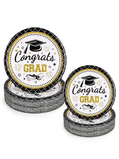 10pcs Graduation Party Plates And Napkins Cups Graduation Decorations Class Of 2026 White And Gold Disposable Paper Plates Luncheon Napkins Cocktail Napkins For Congrats Grad Party Decorations, Serve 10