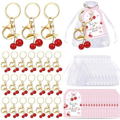 10sets/30pcs,20sets/60pcs Cherry Keychain Party Favors,Including 10/20pcs Cherry Keychain,10/20pcs Thank You Cards Ang 10/20pcs Organza Tags, Cherry On Top Party Decorations Cherries Keyring Red Fruit Gifts For Birthday Baptism Wedding Guests - Multicolor - View 10