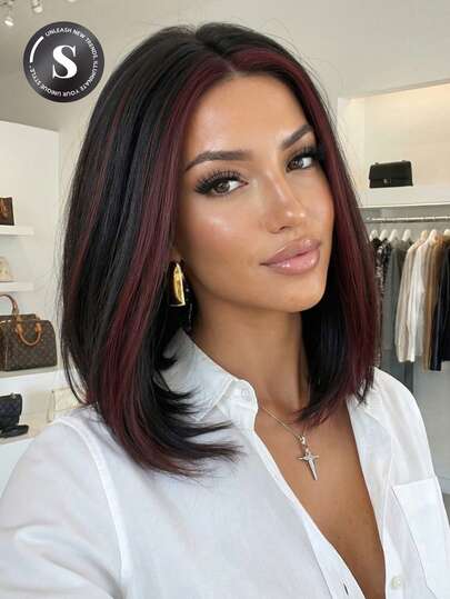14 Inch Red Highlight Short Straight Synthetic Wig, Women's Customized Short Hair, Made Of High-Temperature Fiber And Rose Mesh, Blonde Color, Freely Trimmed, Fashionable And Versatile, Suitable For Beginners, Dopamine Style, Comfortable , High-Quality Multi-Purpose, Fashion Essential, Applicable For Daily, Party, Cosplay, Holiday, Music Festival, Carnival