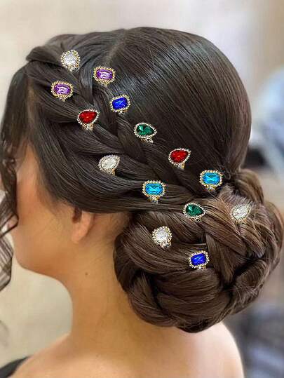 14pcs Set! Colorful Women Hair Accessories, Including Rhinestone Hair Combs, Side Combs, Bridal Hair Decorations, Suitable For Weddings, Dances, Photography, Spring & Summer Wear - Multicolor - View 6
