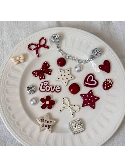 19pcs Heart Series Shoe Decoration Set, Red & White Heart, Butterfly, Star Shoe Charms, Heart Theme, Fashionable Detachable DIY Shoe Accessories For Women, Cute Shoes Accessories Gifts Ideas - Multicolor - View 1