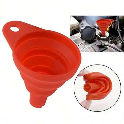 1pc Car Engine Oil Funnel, Car Universal Silicone Liquid Funnel, Foldable Portable Car Oil Change Funnel, Telescopic Long Neck Liquid Funnel - Funnel - View 1