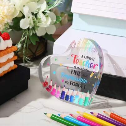 1pc Heart-Shaped Acrylic Graduation Gift For Teachers, Suitable For Office Desk Decor, Thank You Gift