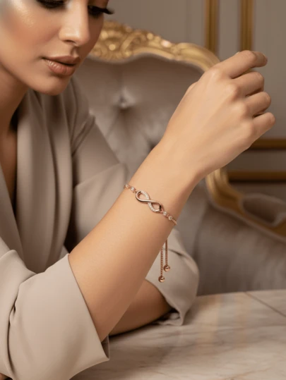 1pc Versatile, Minimalist, Fashionable, Geometric Shaped, Infinity Crystal Adjustable 8-Shaped Bracelet For Women (Gold) - Gold - View 11