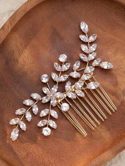 1pc Women's Beautiful Bridal Hair Comb, Wedding Party Bridesmaid Decoration Hair Accessory With Zirconia Elegant Tiaras Valentine's Day Accessories - Gold - View 1