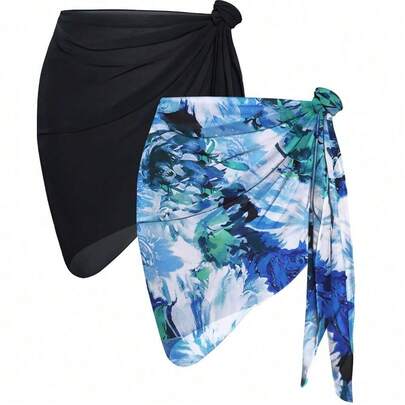 2 Pcs Women's Chiffon Sarong Swimsuit Cover Ups Multi-Way Beach Wrap