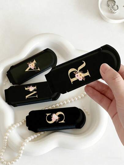 2-In-1 Foldable Vanity Mirror, Designed With A Golden Floral Initials Pattern, A Portable Desktop Modern Travel Beauty Tool, A Folding Comb With A Vanity Mirror, Easy To Carry, Dual Use Air Cushion Comb, Scalp Massage Comb. Suitable As Birthday Gifts, Holiday Souvenirs, Graduation Gifts, School Opening Gifts, Mother's Day Gifts, Wedding Accessories, Travel Accessories, Spring And Summer Essentials, Vacation Outdoor Essentials, School Opening Gifts