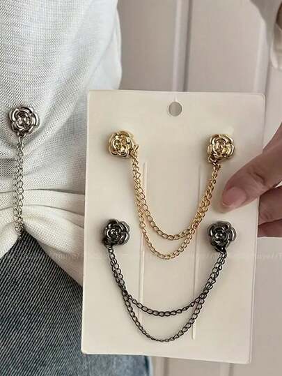 2pcs Rose Shaped Pants Leg Shortening Buttons, Hidden Button Design To Prevent Pants From Dragging On The Ground, Waterproof, Portable, Durable, Suitable For Jeans And Casual Pants, Adjustable Buckle For Fixing Overly Long Dress Sleeves