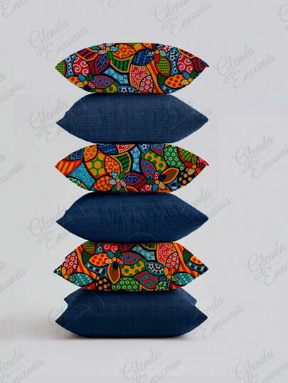 3 Plain 3 Printed Decorative Pillow Covers (6 Units) 0.45X0.45cm-AL