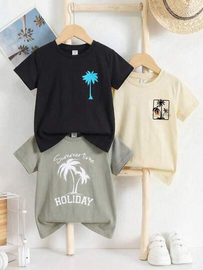 3pcs/Set Tween Boy Casual Letter Print Graphic Crew Neck Knit T-Shirt, Suitable For School And Outdoor Wear, Spring/Summer Y2k Vacation Goth Gothic Streetwear Sumwon Burgundy Holiday Vintage Boho Festival Gras Party Cute Birthday Modest Home Casual Cozy