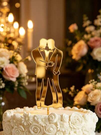 3pcs Elegant Gold Couple Cake Toppers, Suitable For Wedding, Engagement, Valentine's Day, Acrylic Wedding Cake Decorations, Romantic Wedding & Party Decor, Perfect Gift For Couples, Wedding Cake Decoration