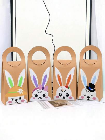 4/8pcs Easter Gift Bags With Handles, Easter Bunny Snack Bags, Easter Candy Gift Bags Suitable For Easter Egg Hunting, School Activities, Easter Parties, Birthday Gifts, Wedding Favors, Bridal Shower, Friends Gathering, Holiday Parties - Multicolor - View 1