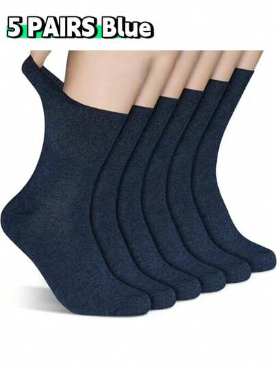 5 Pairs Wide Mouth Mid-Calf Socks | Wide Mouth Socks For Swollen Feet | Middle-Aged & Elderly Plus Size, Men's Socks, Long Tube, Summer Thin Cotton Socks, Extra Wide & Large Mouth | Suitable For Various Occasions, Suitable For Middle-Aged & Elderly Unisex, Gift
