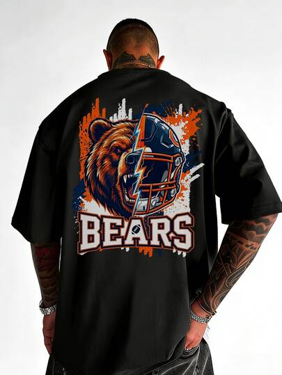 American Football Team Slogan Print Men's Fashion Graphic Round Neck Short Sleeve T-Shirt - Black - View 1
