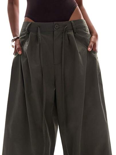 Aveloria Affinna Retro Casual Elastic Waist Drawstring Striped Loose Straight Leg Pants, European And American Style - Army Green - View 6