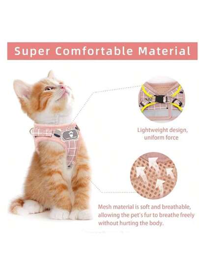 Cat Harness & Leash Set, Breathable Mesh Pet Vest Harness With Reflective Strip, Adjustable Step-In Harness For Small Cats (Pink Pattern), Cat Coil Spring Toy, Cat Collar With Bell - Baby Pink - View 1
