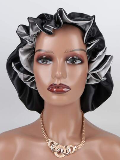 Color Block Satin Sleeping Hat Silk Bonnet Satin Bonnet Valentine's Day Sleep Bonnet