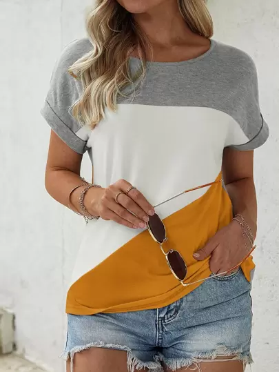 6. Contrast Panel Batwing Sleeve Tee