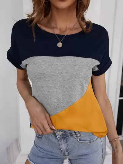 6. Contrast Panel Batwing Sleeve Tee