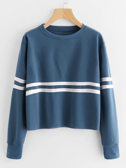 Contrast Striped Sweatshirt - Dusty Blue - View 1