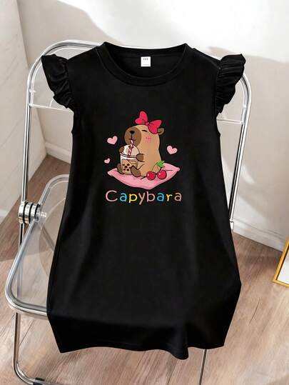 Cute Cartoon Pattern Dress For Young Girls, Suitable For Spring, Summer And Vacation Outings, Parties And Activities - Black - View 1