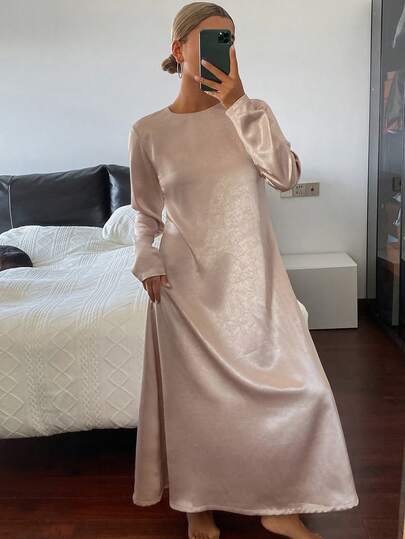 DAZY Satin Shiny Backless Criss-Cross Strap Loose Women Nightgown - White - View 1