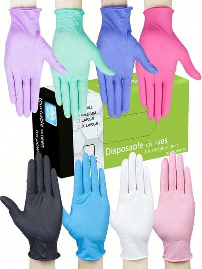 Disposable Nitrile Gloves, Durable Household Cleaning Gloves, Latex-Free, Waterproof & Anti-Static, Multi-Purpose Gloves Suitable For Home Cleaning, Kitchen, Bathroom, Household Items - Multicolor - View 1