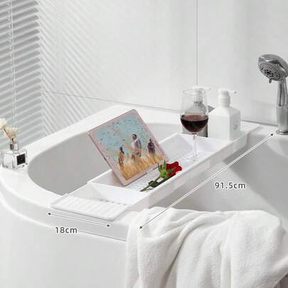 Extendable Bath Tub Caddy, Foldable Wooden Bathtub Storage Rack, Bath Tub Phone Holder Shelf