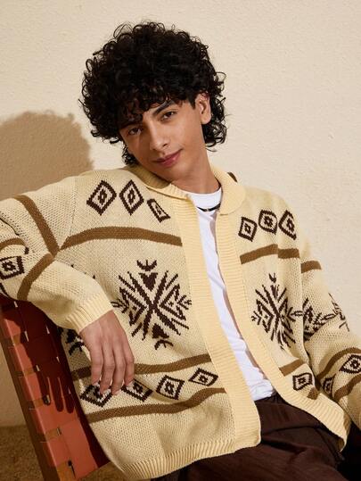 Felipe Marques Men's Casual Geometric Pattern Sweater, Autumn/Winter - Khaki - View 1