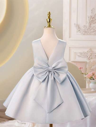 Flower Girl Wedding Little Girls White Bowknot Princess Dress, Children Wedding Bridesmaid Pageant Birthday Piano Recital Overall Sleeveless Dress