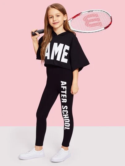 SHEIN Tween Girl Letter Graphic One Side Leggings - Black - View 1