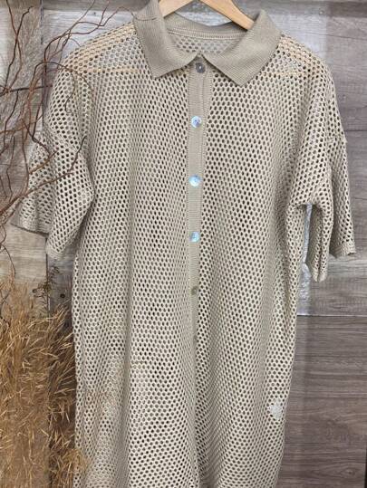 Kimono Chamise Short Sleeve Button Up Beach Cover Up Elegant Chic