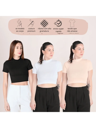 6. Kit 3 Cropped Viscolycra Women's Tops - Basic Women's Blouse