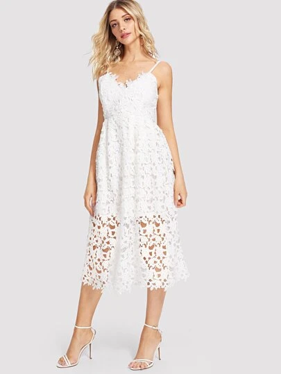 Lace Hollow Out Cami Dress - White - View 1