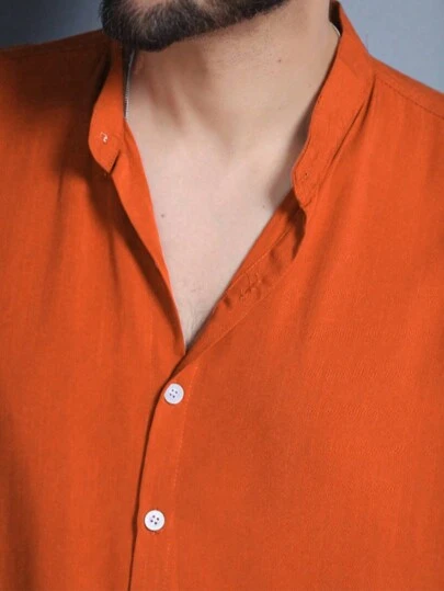 MEN'S TOP Shirt Priest Collar Short Sleeve Men's Formal Linen Shirt