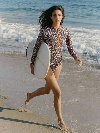 Maija Women's Leopard Print One-Piece Swimsuit, Suitable For Beach Vacation - Brown - View 5