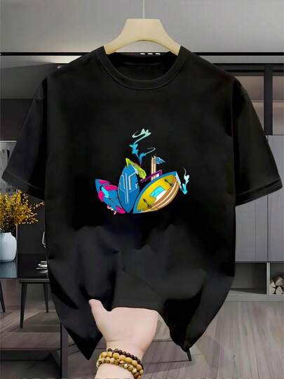 Men's 100% Cotton T-Shirt – Colorful Urban Print Summer Spring/Fall Regular Fit No Pleats