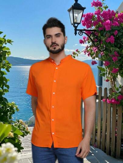 Men's Short Sleeve Priest Collar Shirt