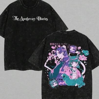 Men's Washed Cotton T-Shirt - Great Value Anime Graphic Tee - Apocalypse Diana, Vintage Japanese Fashion Double-Sided Print T-Shirt for Anime Fans - Casual Summer T-Shirt, Gift for Manga Lovers, Festival Outfit, Bold Geometric Design Suitable as a Fan Gift