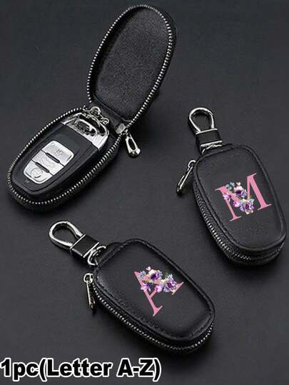 Minimalist Key Holder,26 Letters A-Z Flower Ben Printing Car Key Case, PU Imitation Leather Organizer,PU Keychain Wallet, Zippered Bag, Car Key Organizer, Key Holder For Car, Home, And Office - Ideal For Valentine'S Day, Graduation, And Teacher'S Day,For Key Storage And Organization,Unisex Design, Travel Accessory, Elegant Jewelry, Quality Craftsmanship, Professional Accessory,Gift For Men & Women. - Multicolor - View 1