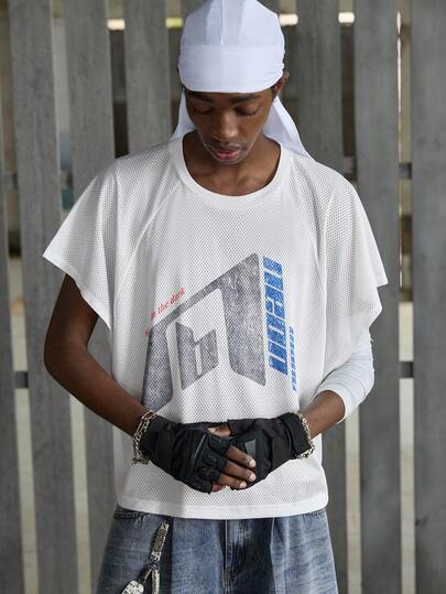 NEON BLANC Men's Street Style White Knitted Round Neck Letter Print Knit Tank Top, Suitable For Summer - White - View 1